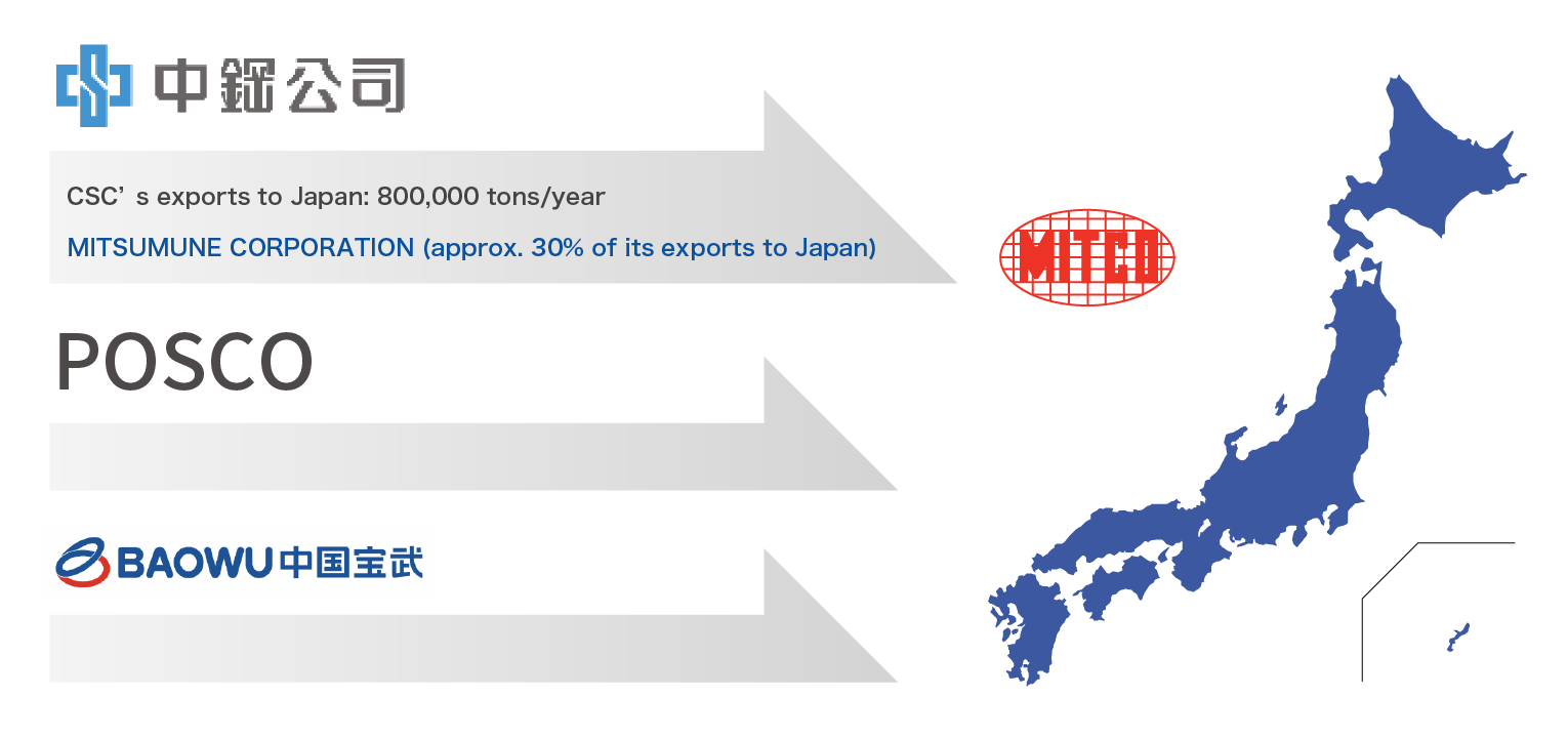 MITSUMUNE accounts for approximately 30% of China Steel Corporation (CSC)’s steel materials exports to Japan. CSC has a long-standing business relationship with us as a main supplier.