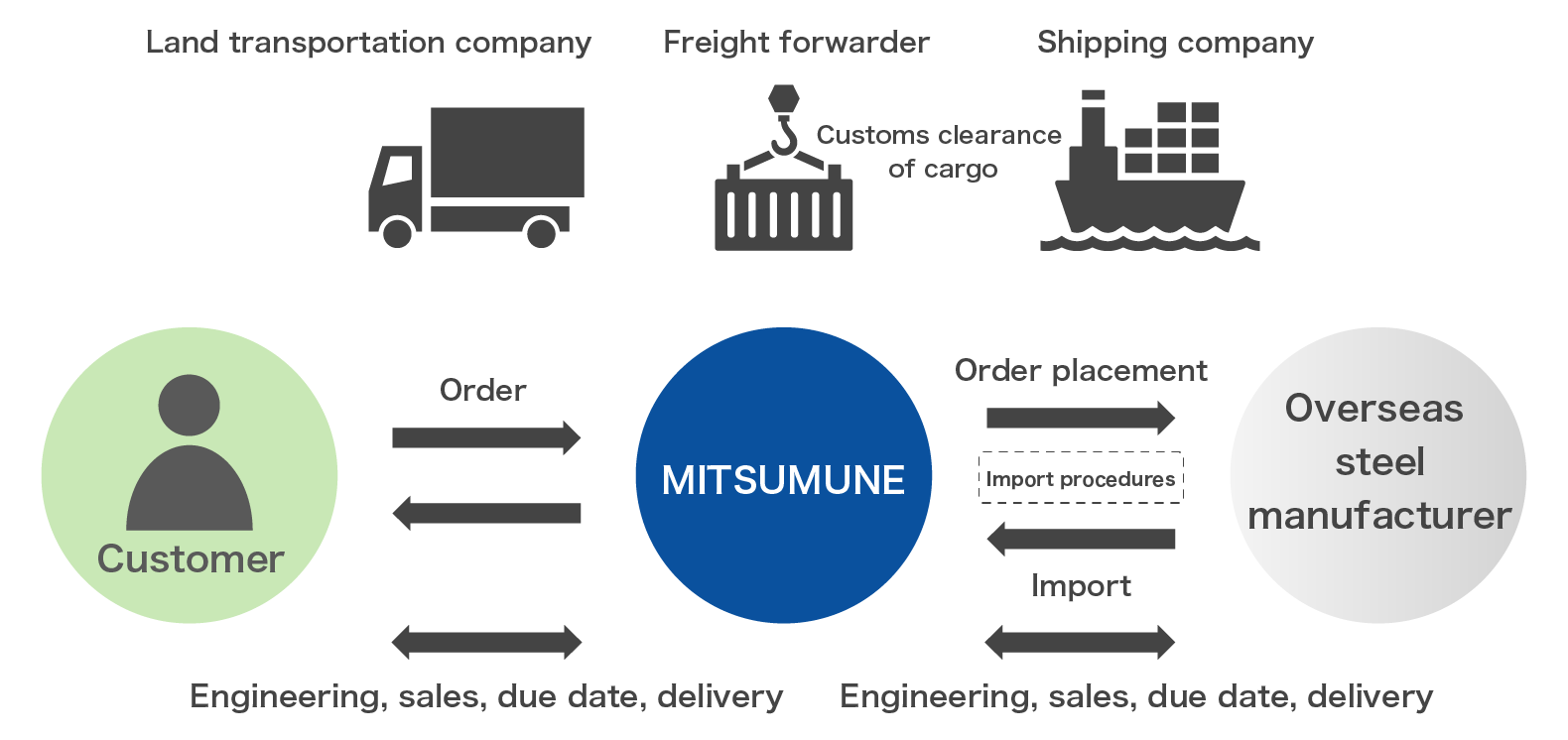 As a pioneer in the import of steel materials, we leverage our experience in importing steel materials into the Japanese market and the know-how we have accumulated over 50 years in order to deliver the most suitable products for our customers.